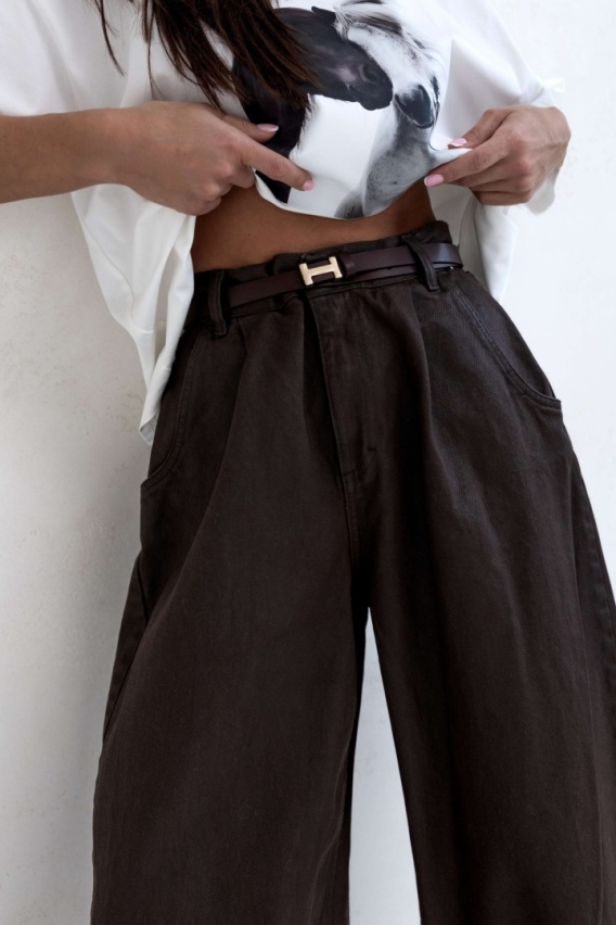 SPODNIE WOSKOWANE JEANS CZEKOLADOWE Sempre